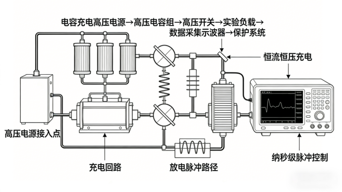 High voltage pulse power and capacitor charge-discharge experiments are core researches for pulse power technology, electrical insulation and EMC, covering high-voltage capacitor charging, nanosecond pulse generation, withstand voltage and electromagnetic pulse simulation for university labs and power research institutes.