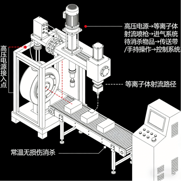 Low-temperature residue-free plasma disinfection kills bacteria, viruses and spores through reactive radicals, charged particles and UV light. Widely used in food processing, cold chain disinfection and medical surface sterilization.