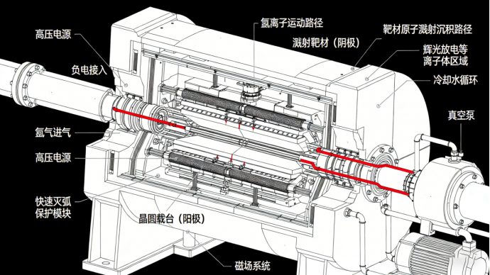 Magnetron sputtering is essential for wafer metallization. High-energy ions bombard targets to deposit uniform metal layers such as interconnects, barrier layers and seed layers. Compatible with Al, Cu, Ti, Au and other materials for wafer manufacturing and advanced packaging.