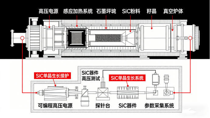 Full-process solutions for SiC and GaN wide-bandgap semiconductors including crystal growth, epitaxy, high-energy implantation, high-temperature annealing and high-voltage testing for new energy vehicles, PV and 5G RF devices.